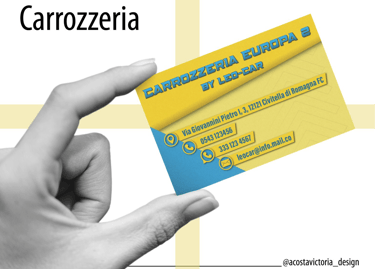 Progetto di design grafico e stampa di un bigliettino da visita personalizzato per una carrozzeria. (Progetto reale)